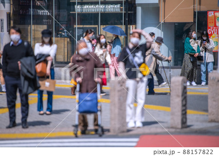 日本の東京都市景観 解除されたまん延防止(6波が続く中で)。渋谷に高齢者急増…悲劇再び…=3月28日