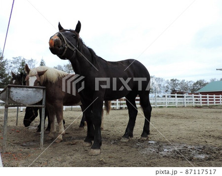 にんじんをくわえているばん馬