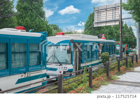 警視庁 バリケードと人員輸送車