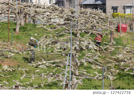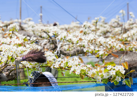 人口受粉梨花花粉交配作業