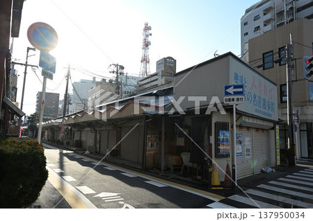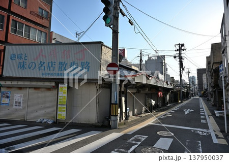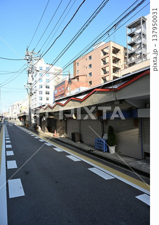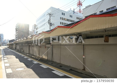 三和市場のお店のシャッターが閉まっている風景 兵庫県尼崎市
