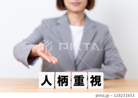 人柄重視のブロックとスーツを着たミドル女性ビジネスウーマン