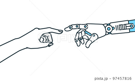 人工知能AIと人間。パートナーシップを連想させるベクターイラスト素材。