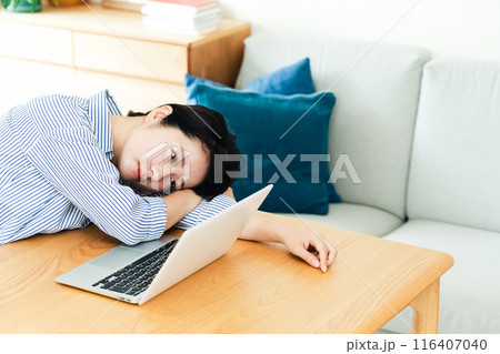 リビングでパソコンを使う若い女性