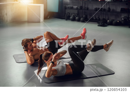 A Couple Actively Engaging in a Workout Together in a Stylish and Contemporary Gym Environment