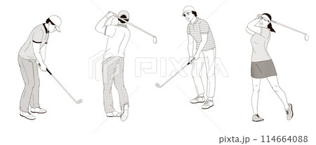 golf players African American male and female characters with clubs black and white outline vector illustration