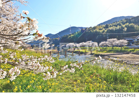 桜や菜の花が咲く福岡県みやこ町今川の春の風景