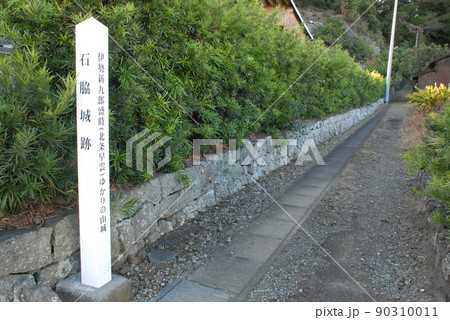 石脇城跡の標柱と登城口(静岡県焼津市)