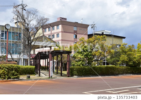 滋賀県高島市 湖西線近江今津駅西口のロータリーとローラン名小路