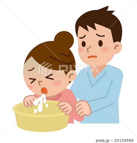 吐きそうな女性と旦那さん(悪阻・二日酔い・体調不良等)