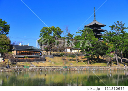 【奈良県】晴天の興福寺(五重塔と猿沢池)