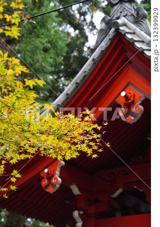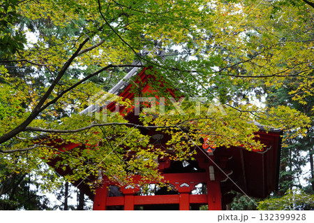 紅葉が始まった楓と延暦寺の朱塗りの建物