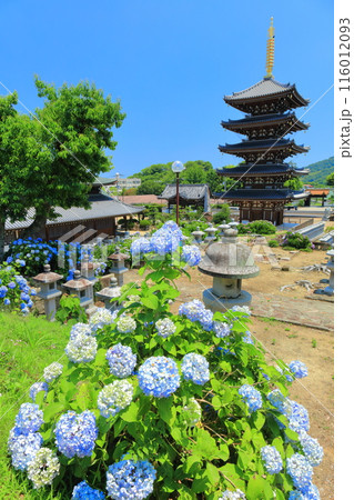 香川県】紫陽花が満開の法然寺の五重塔(仏生山)