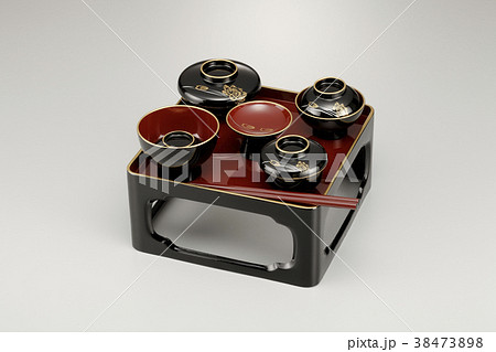 イラスト素材:お供え物 御霊供膳(おりくぜん) 器 カラーイラスト セット