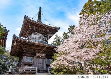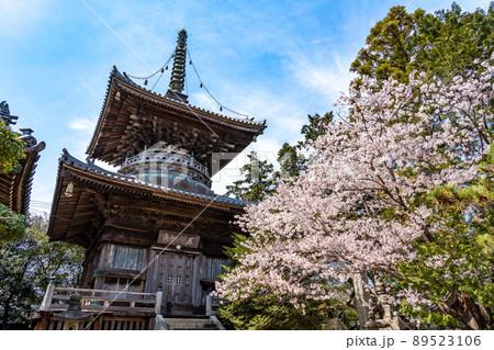徳島県鳴門市 春の四国遍路の一番札所である霊山寺と多宝塔