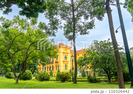 ベトナムハノイ市 ホーチミン廟の隣にある黄色が美しい仏領インドシナ総督の邸宅