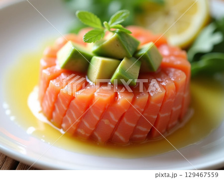 Appetizing Fresh Salmon Tartare Garnished with Avocado Cubes Culinary Delights