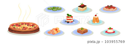 Italian Food and Dish Served on Plates Vector Set