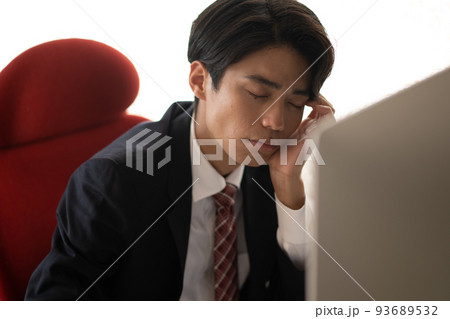 オフィスで仕事に疲れる若いビジネスマン