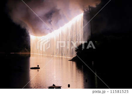 仕掛け花火。ナイアガラ富士。常総きぬ川花火大会。