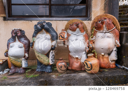 滋賀県甲賀市信楽町の狸の焼き物を撮影