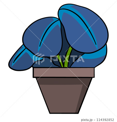 Semi-tropical Houseplant Growing in Potting Soil in Ceramic Flowerpot Vector Set