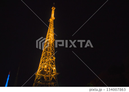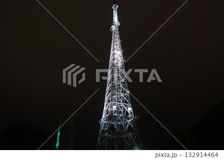 夜空に映える仙台テレビ塔と放送塔の輝き