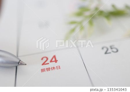 カレンダーに赤文字の振替休日。ある月の24日。