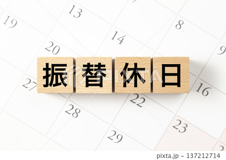 「振替休日」と書かれたブロックとカレンダー