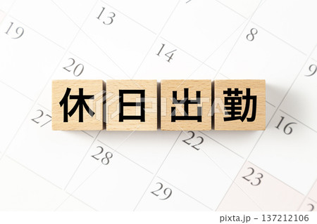 「休日出勤」と書かれたブロックとカレンダー