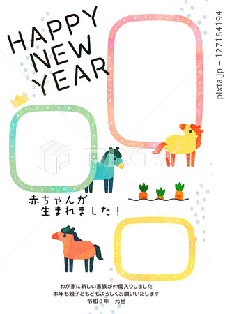2026年の午年の馬をモチーフにしたイ2026年の午年の馬をモチーフにしたイラストの年賀状はがき素材