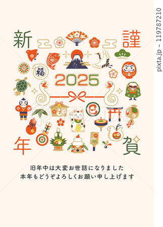 2025年の巳年のイラストの年賀状はがき素材 和風