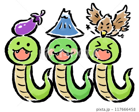 富士・鷹・茄子を頭に乗せた蛇(巳) 筆タッチイラスト