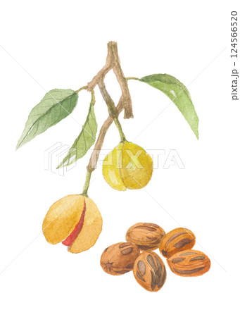 水彩で描いたナツメグ