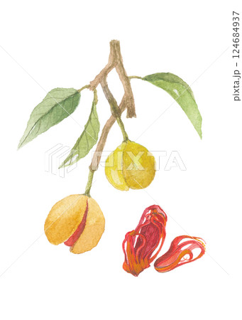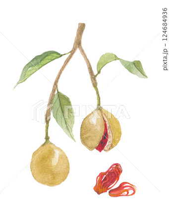 水彩で描いたナツメグ メース