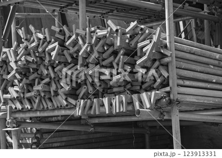 積まれた仮設資材(鉄筋用パイプ馬)イメージ