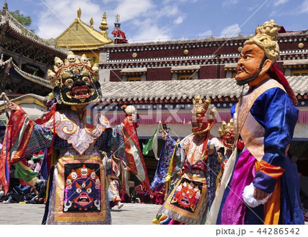 中国・青海省・西寧郊外のタール寺の仮面舞踏
