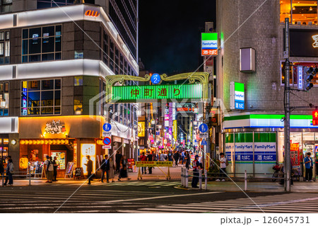 日本の東京都市景観 東京・上野。仲町通りなどを望む(夜景)