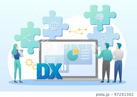 デジタルトランスフォーメーションについて検討する人々とパソコン