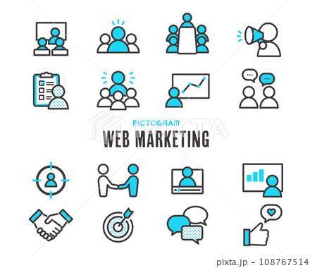 マーケティングに関するピクトグラムアイコンのベクターイラスト素材
