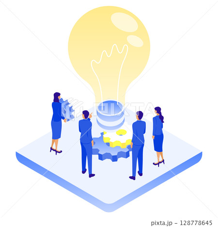 ビジネスチームのアイデア創出と歯車の連携|イノベーションと協働の象徴イラスト