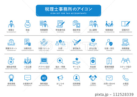 税理士事務所のアイコンセット 税理士 確定申告 税金 納税 記帳代行 法人税 所得税 決算 税務