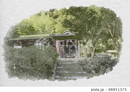 水彩画風 法泉寺 鐘楼 岡山県井原市