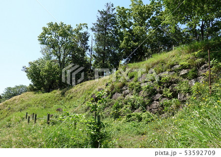 石脇城跡にある一の曲輪裏手の土塁跡(静岡県焼津市)