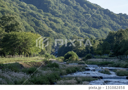 檜枝岐村の山あいを抜ける伊南川の清々しい流れ