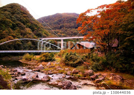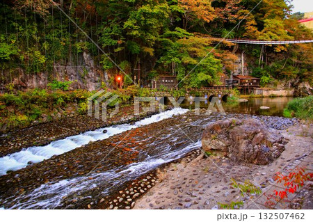 錦秋の川治温泉郷… 夕景の『男鹿川』