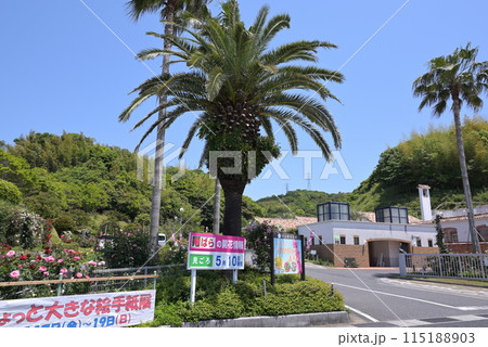 ばら祭の「冠山総合公園」入口(山口県光市)
