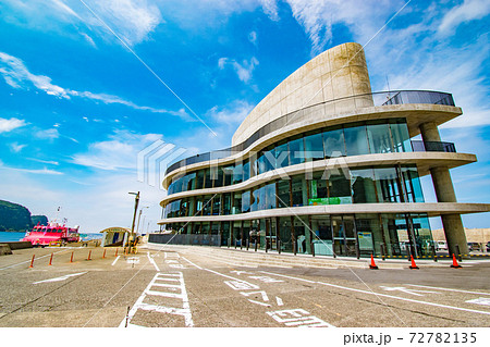伊豆大島の玄関口である晴れた日の岡田港船客待合所
