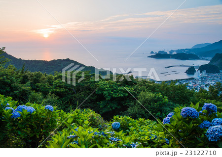 松崎牛原山アジサイの丘と夕陽