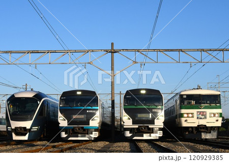東大宮で並ぶ特急車両(E261系・E257系2000番台・E257系5000番台・185系)
